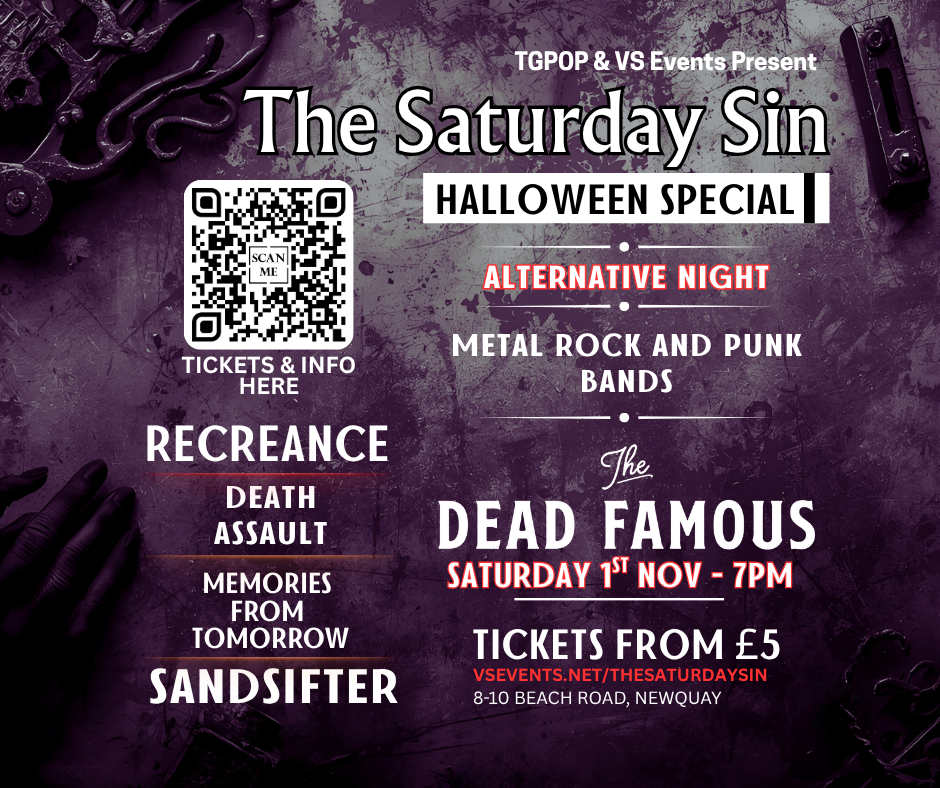 Metal Rock and Punk right in the heart of Newquay for Halloween on Saturday Nov 1st! Doors 7pm!